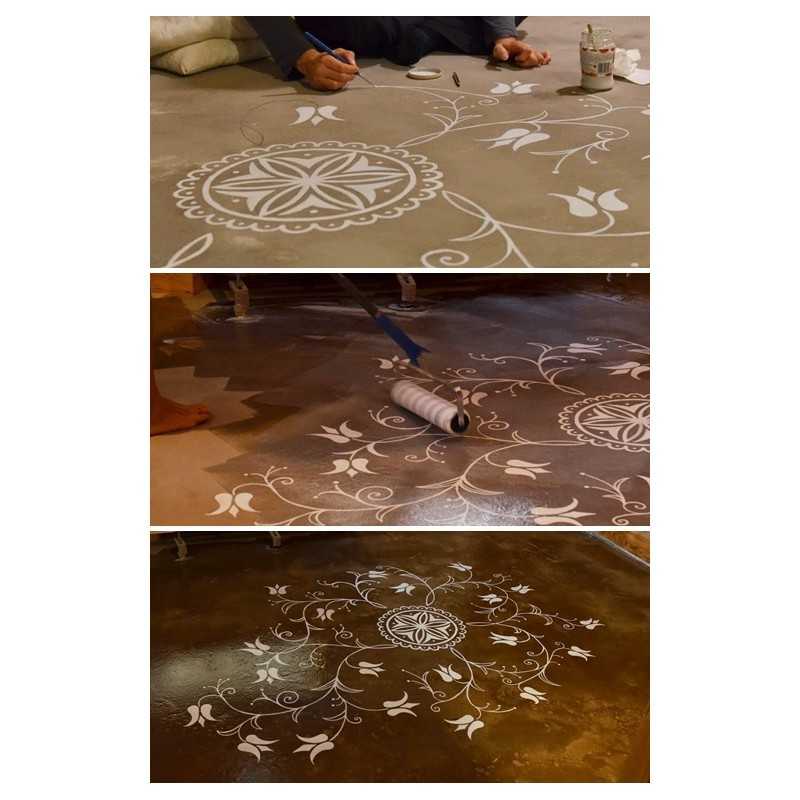 Floors: concrete, cement, wooden | Wet film thickness in microns / mils | Dry film thickness in microns / mils | Consumption per m² / ft² per gallon | Comments | |